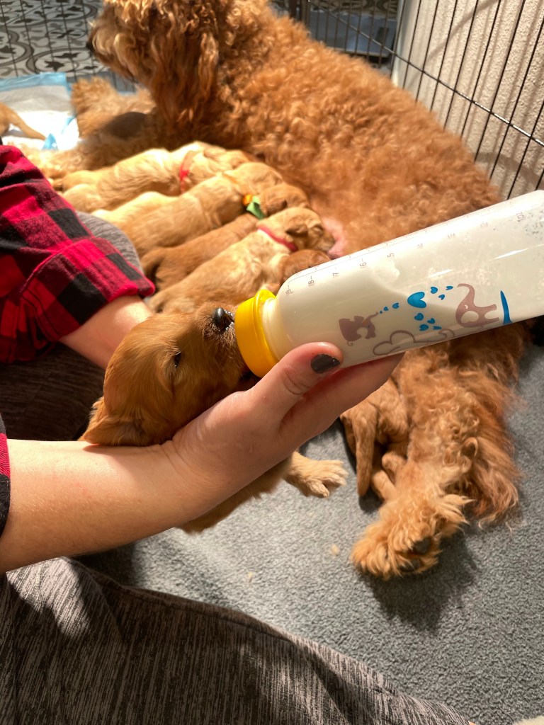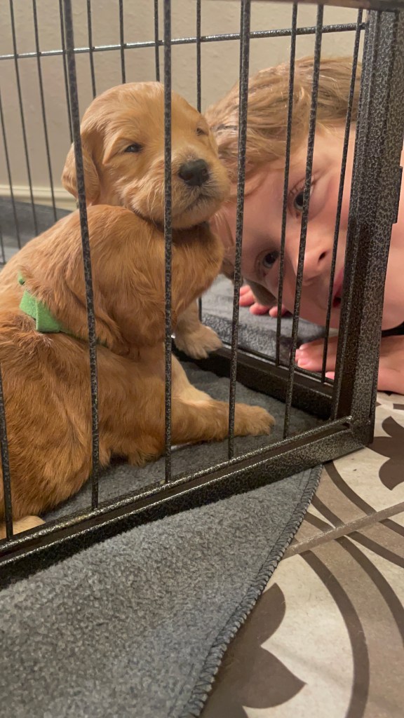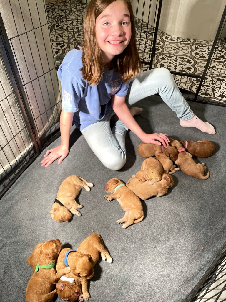 We are definitely getting into a puppy-ing routine. But it is still a wearying cycle of helping Birdie nurse every two hours including through the night, mixing puppy formula, sterilizing bottles, bottle feeding, and cleaning up puppy poop (SO. MUCH. POOP!) We clearly greatly underestimated the amount of work it would take to have a house with 13 dogs that DOES NOT SMELL LIKE HOUSE WITH 13 DOGS! Overwhelming is an understatement. But the upside is that the puppies get sweeter and fatter and cuter every day. Their hair is getting thicker and we are finally starting to have some little puppy eyes peeking out. The kiddos can’t get enough of them and each one has their personal favorite. For those who have asked, we still have some puppies available.