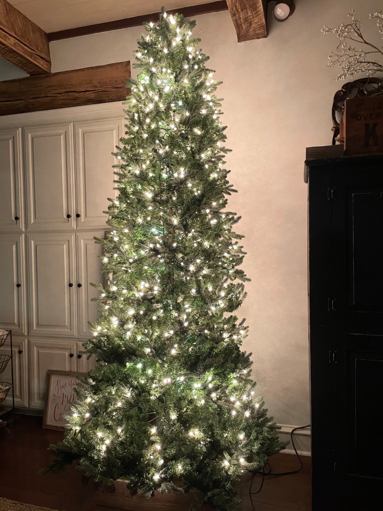 ~ for fresh jubilation as I put up our beautiful 9 foot Christmas tree that I found on the side of the road last year! Still the best find EVER! And for my sweet husband who hunted all over town to find the one remaining box of clear white twinkle lights.