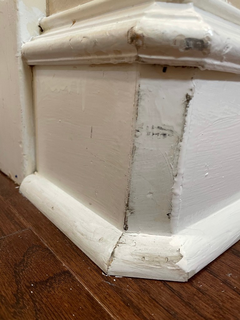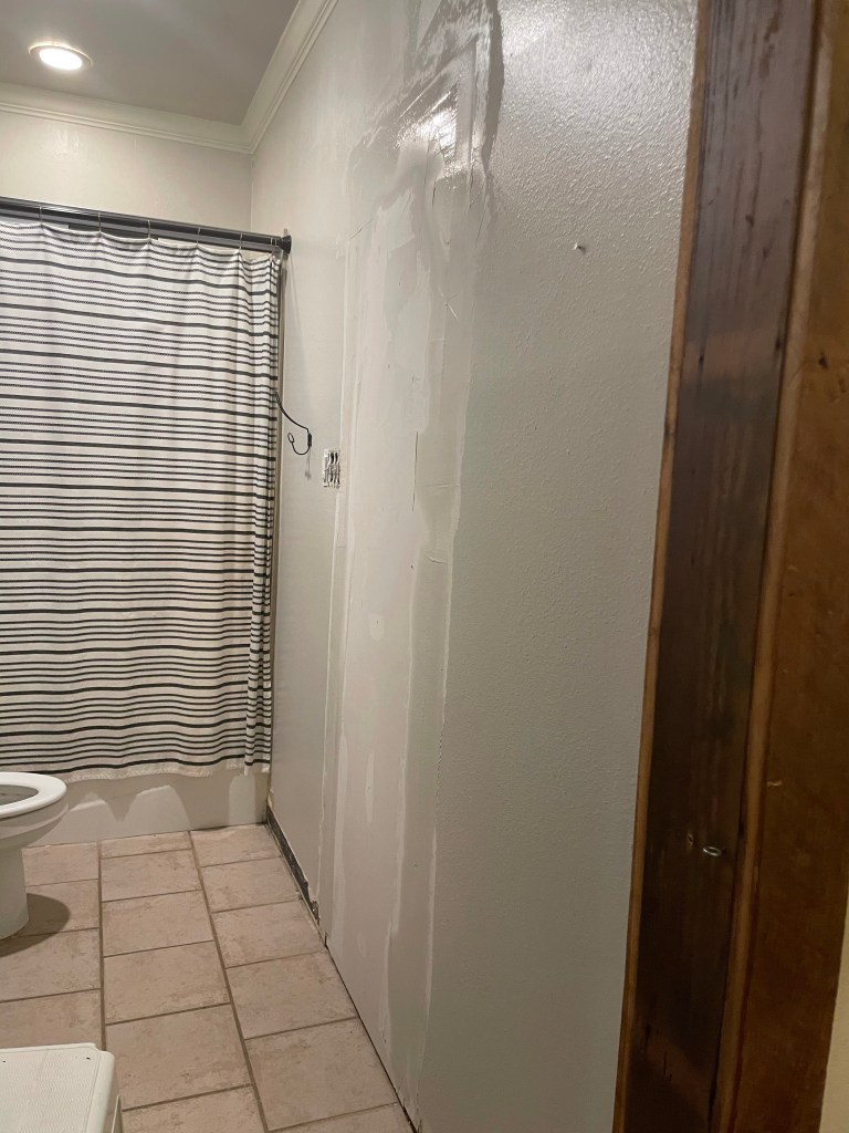 Another long-awaited project was to repair/mask a curved wall in our master bathroom with cracked and dimpled sheetrock.
