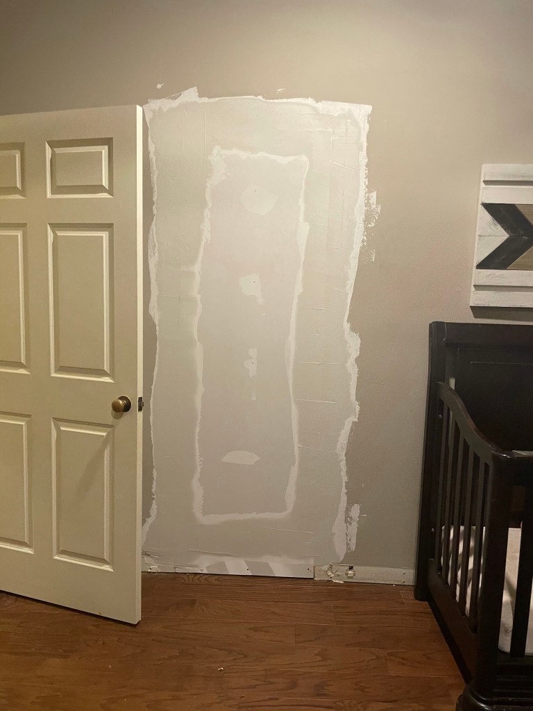 But there was still a door into Sawyer/Tatum’s room. A 60 square foot room is TOO SMALL for TWO DOORS! I was thrilled to have the doorway walled up finally.