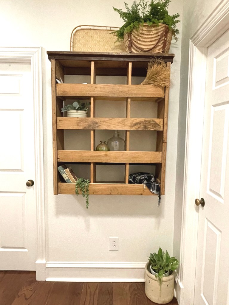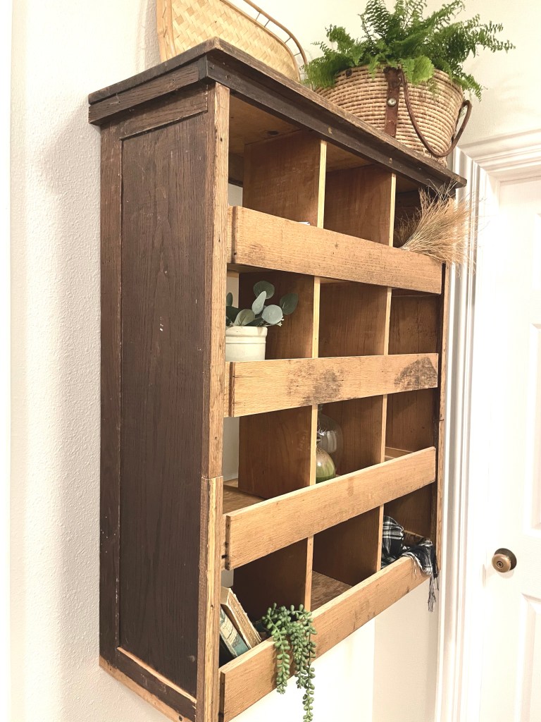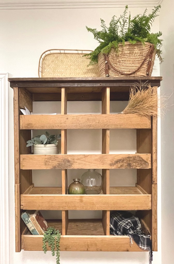 I’ve been looking for a certain vintage piece for our home for a LOOOONG time: a rustic wooden chicken nesting box. I’ve seen them in other people’s decor and fell in love. Little drawers and cubbies are just my favorite, and I’ve been hunting for a piece like this for YEARS. They are hard to find, and invariably WAY out of budget.
