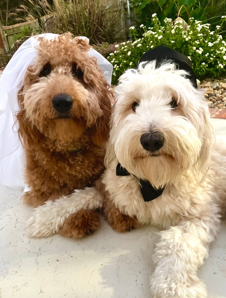 ~ For exciting news that we have been anxiously awaiting to announce. We had an intimate backyard wedding this week. To be honest, it was a shotgun wedding. The newlyweds are expecting their first litter any day now.