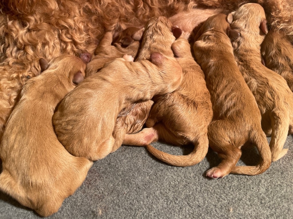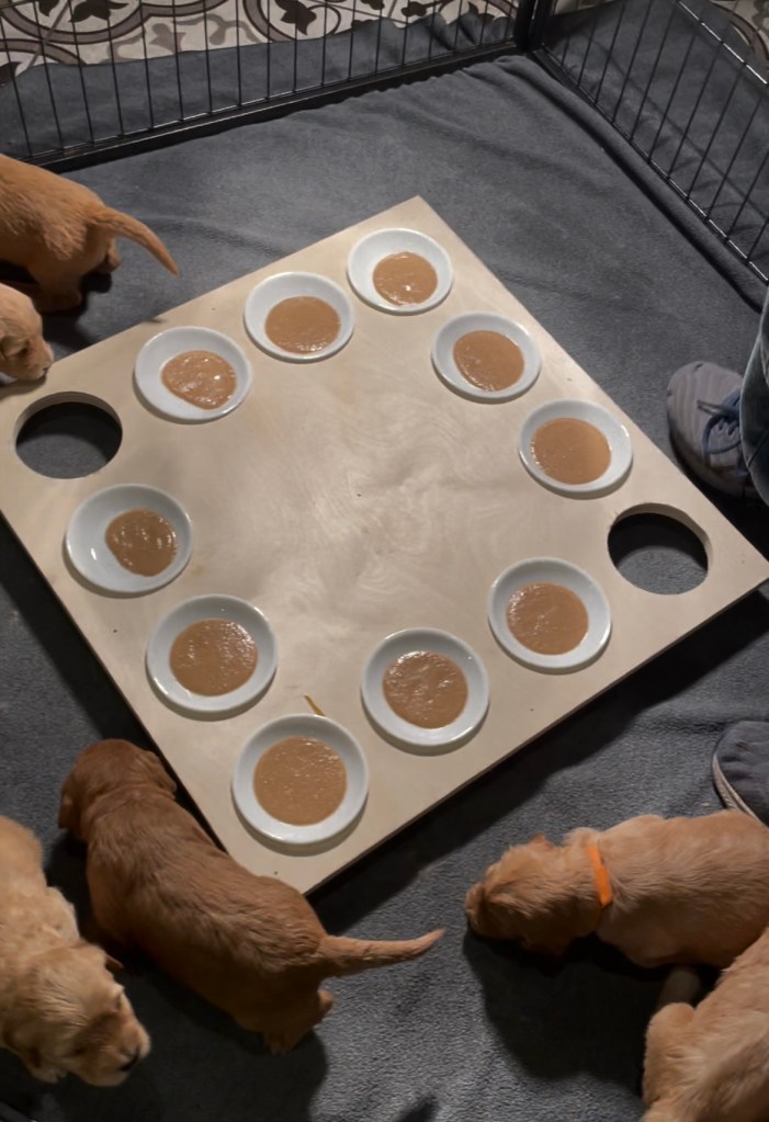 ~ the puppies are growing and changing and getting cuter every day. They. Are. SO. BIG! It looks completely absurd when they tackle poor Mama Birdie to nurse…it looks like that are devouring her! They are now consuming 13 pounds of puppy food a week, and producing roughly 496 pounds of poo each day. Keeping the pups and their pen clean is a nonstop endeavor. Just two more weeks til they go to their forever families. I can’t deny looking forward to the reprieve, but I’ve already shed some tears when I think about saying goodbye. They truly have 11 large pieces of my heart.