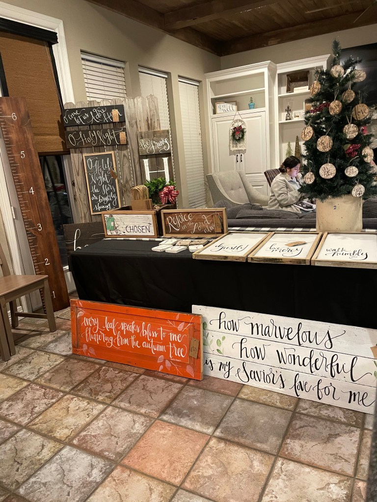 ~ for a pedal-to-the-medal, paint-til-your-fingers-fall-off, a LOT more Giddyup-than-Whoa week! I completed 6 signs this week (including the big whopper I mentioned last week), and I only have ONE MORE project to complete before Christmas! Grateful for a busy season, and grateful for a rest!