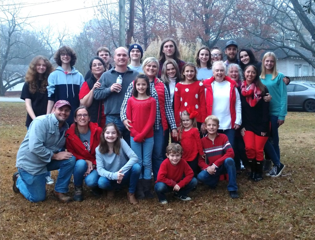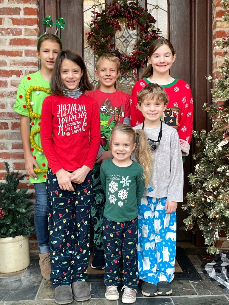~ for the fastest, least painful family Christmas photo in Rucker history. My Big kids LOATHE taking pictures. It generally takes bribery, coercion, and threats of bodily harm to get it done. They tolerate it, because they know they don’t have a choice, but it’s never a very pleasant occasion. This week’s attempt was a MOST UNLIKELY scenario. There was only ONE DAY that Carson Grace didn’t have to work. It HAPPENED to be a rainy day so Colton could drive in from his job. We met at 4 o’clock when the kiddos all got out of school. Sounds perfect, right? EXCEPT, Cooper had to be at his job (up Broadway Ave. in bumper to bumper Christmas traffic) at 4:30!! The kids all quickly changed their clothes, dashed to their spots, and I snapped the picture! Just like that! We were done at 4:06! It was historic! (Tune in next week for the winning shot!)