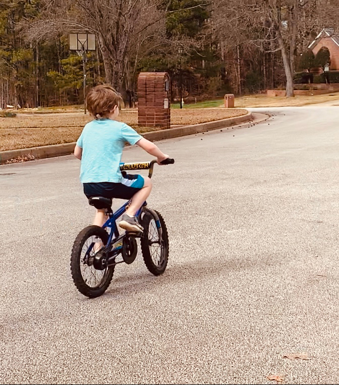 ~ for another thrilling milestone: Sawyer learned to ride his bicycle without training wheels! He just hopped on and took right off! Josh talked to him at bedtime about how much he has loved teaching each of his kids how to ride their bike. That moment of pure joy when the balance kicks in and they soar away on their own. And of course, with Sawyer every new accomplishment is emotional and mind-blowing. No milestones are small or taken for granted. We just can’t believe Sawyer is alive and thriving and turning into a big kid in front of our very eyes. Thank You Jesus! (We did end the day with the inevitable skinned knee and big tears. It’s all part of growing up! Check out that shirt, though!)