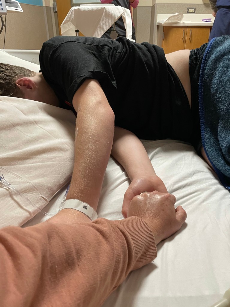 He had finally stopped asking the same repeated loop of questions. But his brain was still very foggy and many holes remained in his memory. After five horrific failed attempts at an unsedated spinal tap, I said “ENOUGH,” and Cooper was finally taken to a procedure room where he received general anesthesia and a successful spinal tap. Mama Bear was NOT PLEASED. Watching my son moan and cry out in pain while grinding his face into a pillow and gripping my hands so tightly I thought they might break was unbearable. BUT GOD.