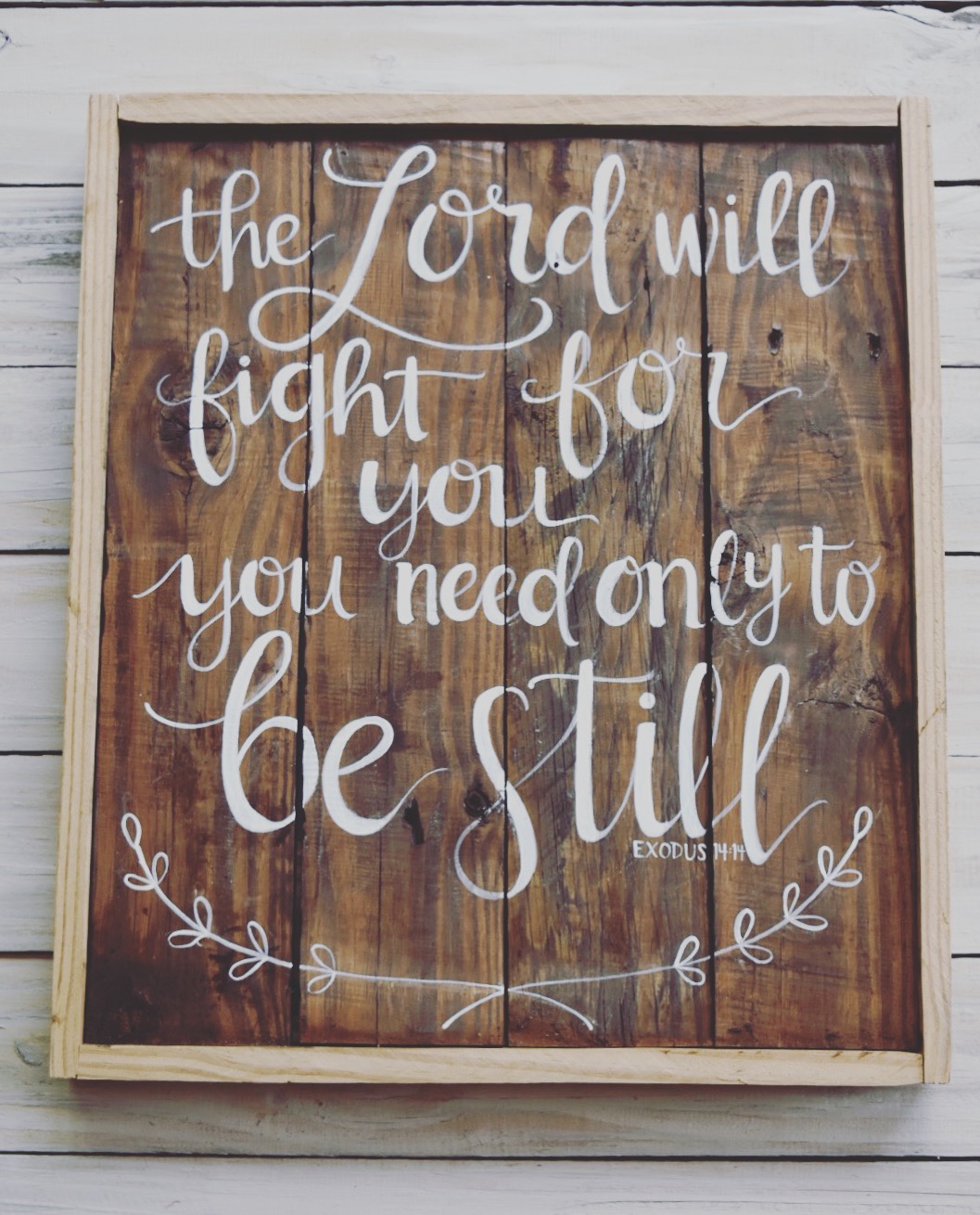 That night after the kids were in bed, I took a bath. I turned on my favorite soft worship playlist and soaked the day off in the hot water and the music. The next day I did my hair and put on a little makeup and changed out of pajamas and put on clothes. (OK so it was actually just changing from one set of loungewear to a nearly identical set of loungewear. A purely lateral move, but at least it was the physical act of changing clothes.) Just putting in the minimal effort to feel like a human. Even something so small and seemingly trivial, I realized how much I had missed the daily reminder of putting on my beautiful handmade gold bracelet inscribed with “it is well.” That afternoon, I took my paints out to a semi-shaded spot in the driveway and worked on a sign while listening to the birds with a gentle breeze on my face.