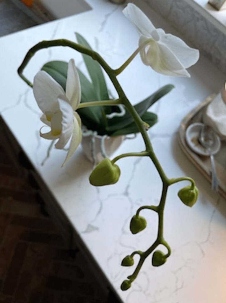 ~for more and more beauty unfolding as my lovely resurrected orchid gracefully and gradually blooms a little more every day. I love watching its story unfold.