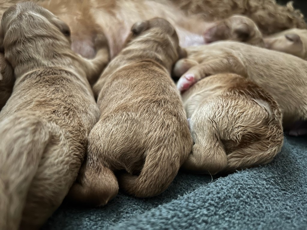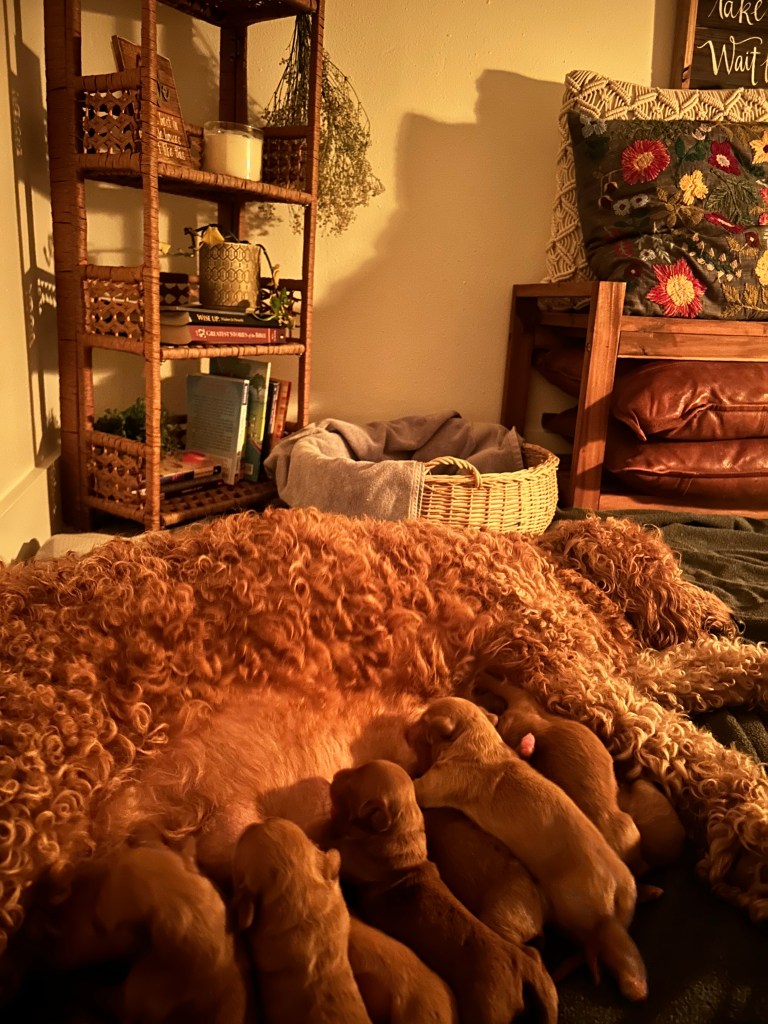 (Oh, and Bear and Birdie welcomed their 5th – and final – litter of minigoldendoodle puppies! 8 sweet babies!)