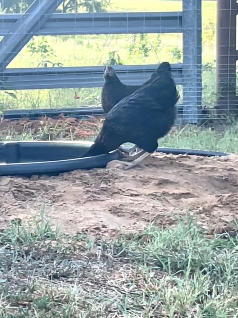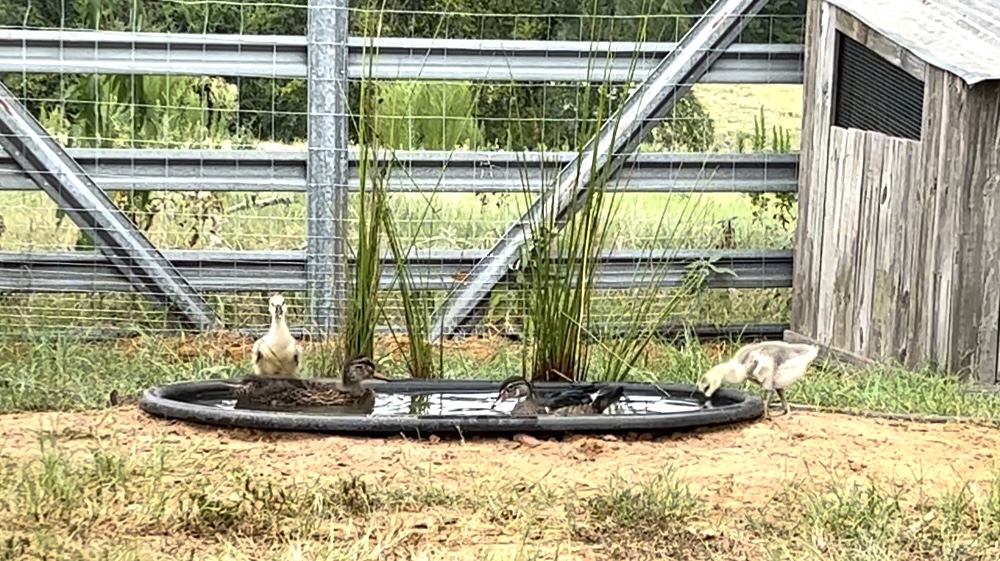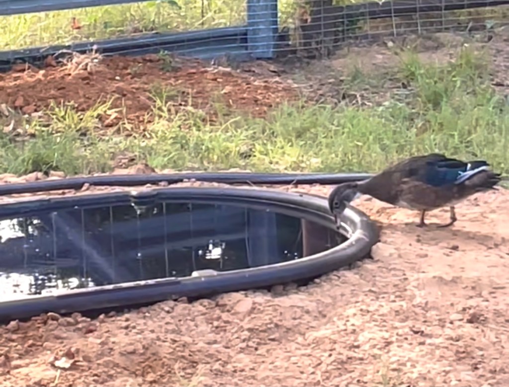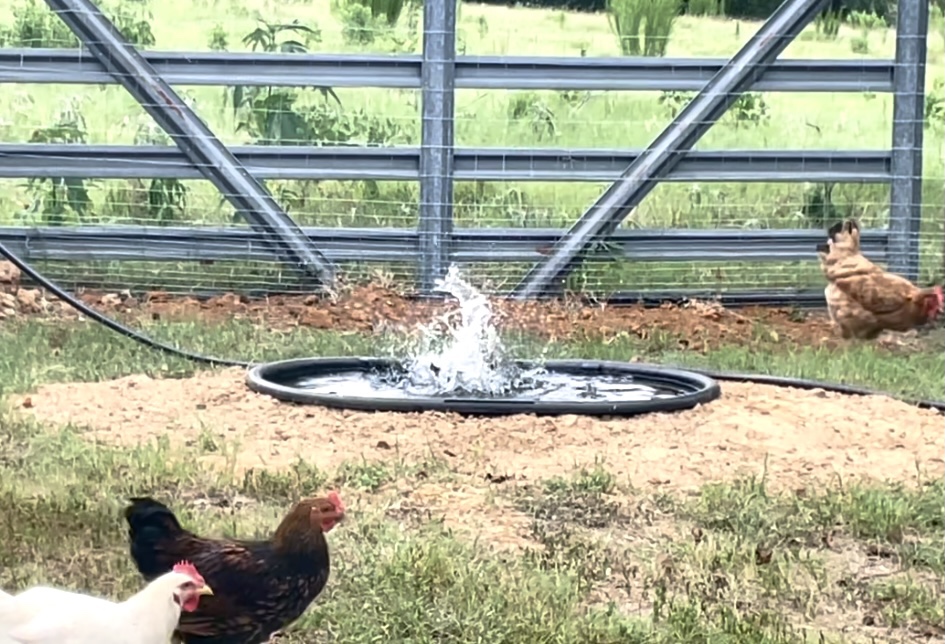 A few more tries, some good, some not so good. The pond is holding water well, and all the chickens enjoy drinking out of their new, large, deep water dish.