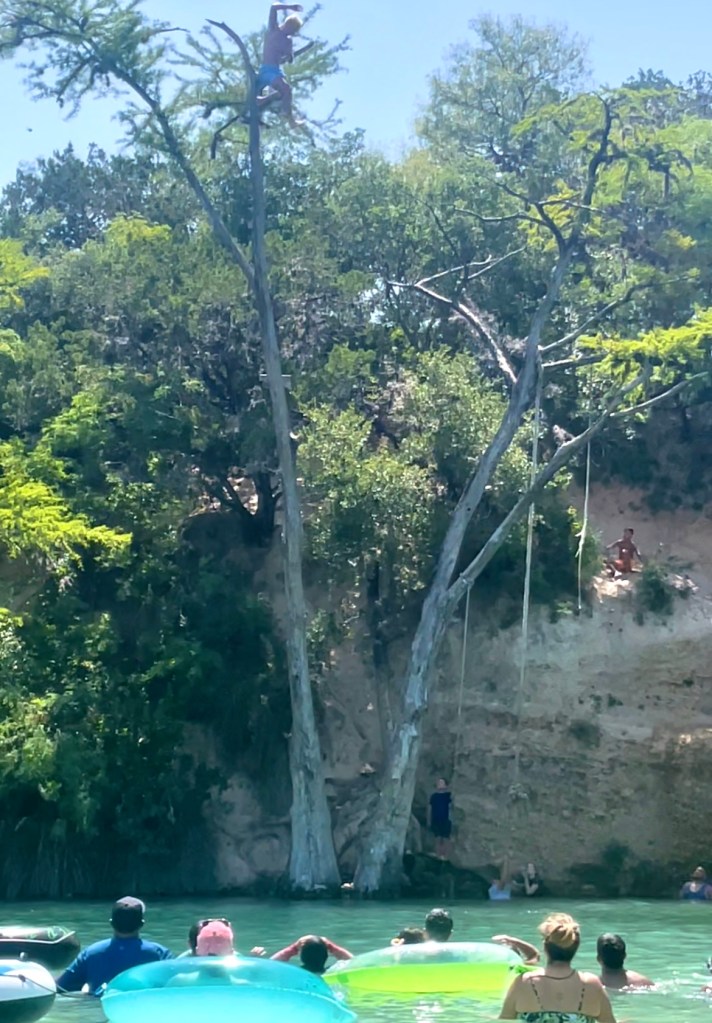 White rock beaches line the river’s edge and periodically among the towering cypress trees, you can spot long, rugged ropes, beckoning you to climb up and take a flying leap into the sparkling Frio below.