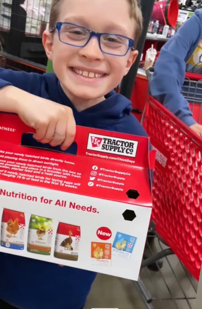 Sawyer proudly showed off his updated photo, featuring Lasagna the Chicken.