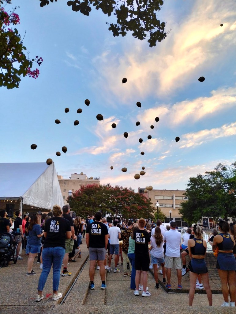 Tuesday night we held our Annual Go GOLD ETX on the Square. Faithful friends and new-found friends showed up to help us deck the Square out in GOLD beneath a giant tent (with portable coolers to combat the blistering Texas heat). We showcased new games for the kids, a great new assortment of merchandise, and rolled out a new-and-improved GOLD carpet. The Square was crowded, full of East Texas HEROES and their families and supporters and friends, as well as people off the street who wandered in to see what had brought the live jazz, ice cream truck, and tantalizing burger truck Downtown. At the center of it all stood our painfully striking Wall of HEROES. Over 100 beautiful children who have battled cancer. People approached the wall and paused. Stared.