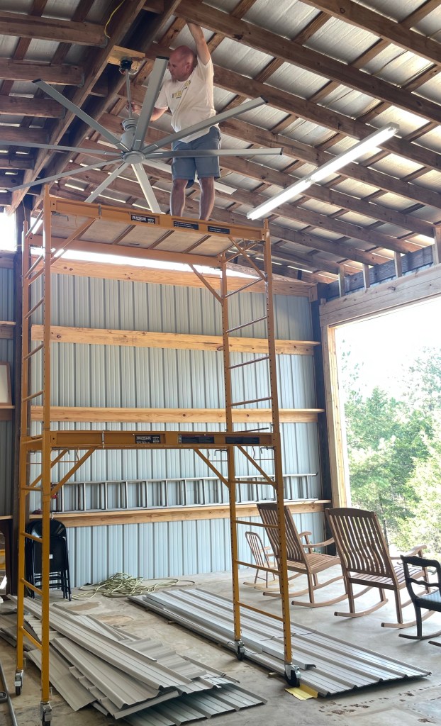 ~ for the next step of progress on finishing the barn. “How can there still be more to do?” you ask. We are learning that there will always be more to do. This week’s project involved, installing custom metalwork on the facia directly below the roofline. It was one of those steps I didn’t really understand…it didn’t seem important. I was absolutely amazed at the difference it made, and so thankful to have that area of the barn protected from the weather. And so very thankful that Cooper was willing to interrupt his plans and come help.