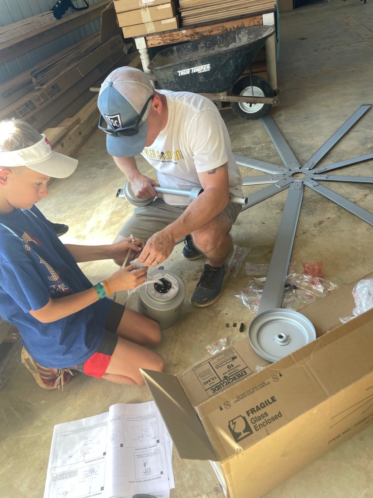 ~ for my hardworking kids. I’m so proud of how much they have learned since we’ve bought the farm. They have learned to use most tools, many of them completely independently. This week they helped Dad replace a pump on the pond fountain, build a cover for the pump, and hang more finish trim on the barn. They never cease to amaze me.