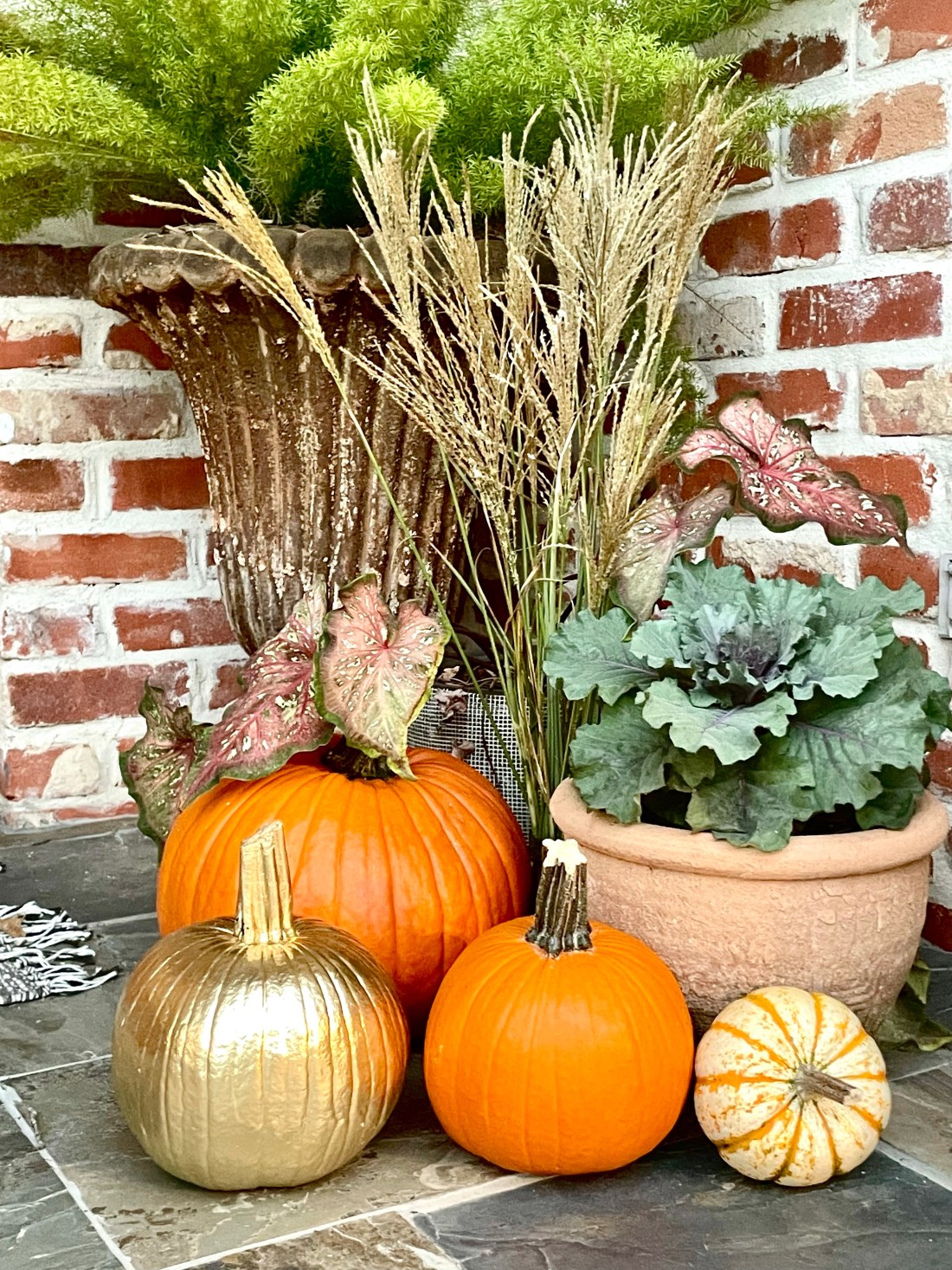 ~for a festive fall front porch. Complete with GOLD PUMPKINS!