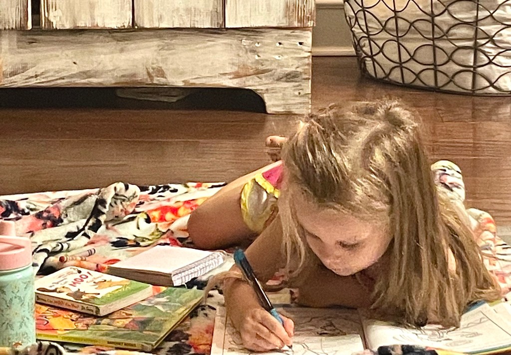As much as we all love summer, we are ALL ready for this season to change. I’m always so happy to have the kids come home for summer. And I’m equally happy to send them back to school. To everything there is a season. But believe it or not, I will miss them when my house is quiet. But I just may enjoy a little quiet too. And I’ll still have my spicy Tater home for one more year. I want to soak up every minute with my girl, and not rush her off to grow up and away. She is excited to start “Pre-skoo wif my mama.”