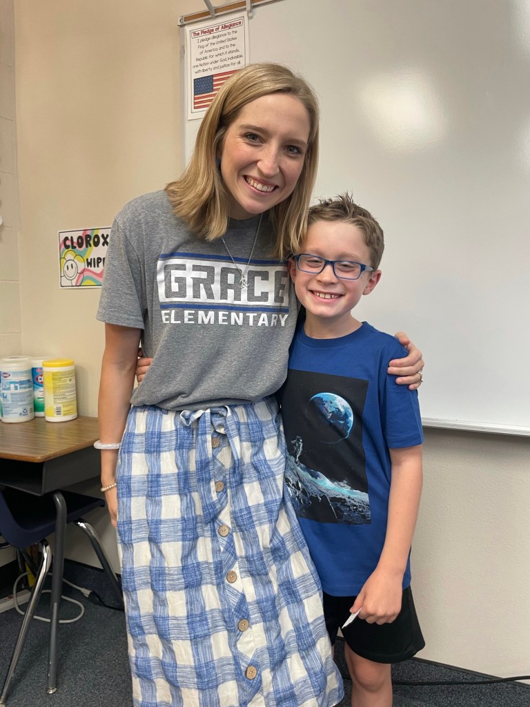 Time continues to run away, and there’s no stopping it. My goal for this school year is to take it all in, not sweat the small stuff, press through even when I’m overwhelmed, and be my kids’ biggest cheerleader. I know these years are hard, but they are the moments I will never get back again. And I’m reminded that “hard” doesn’t always mean “bad.” We are all learning and growing and God is at work. I’m so thankful for His perfect grace and redeeming love. May we all look more like Him next May than we do today.