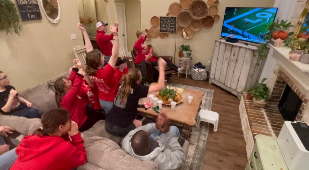 and we’ve got the propane heater and the TV running so we can battle the cold and celebrate the most special moments together – like double decker Cowboys + Chiefs victories today! Let’s Go!!