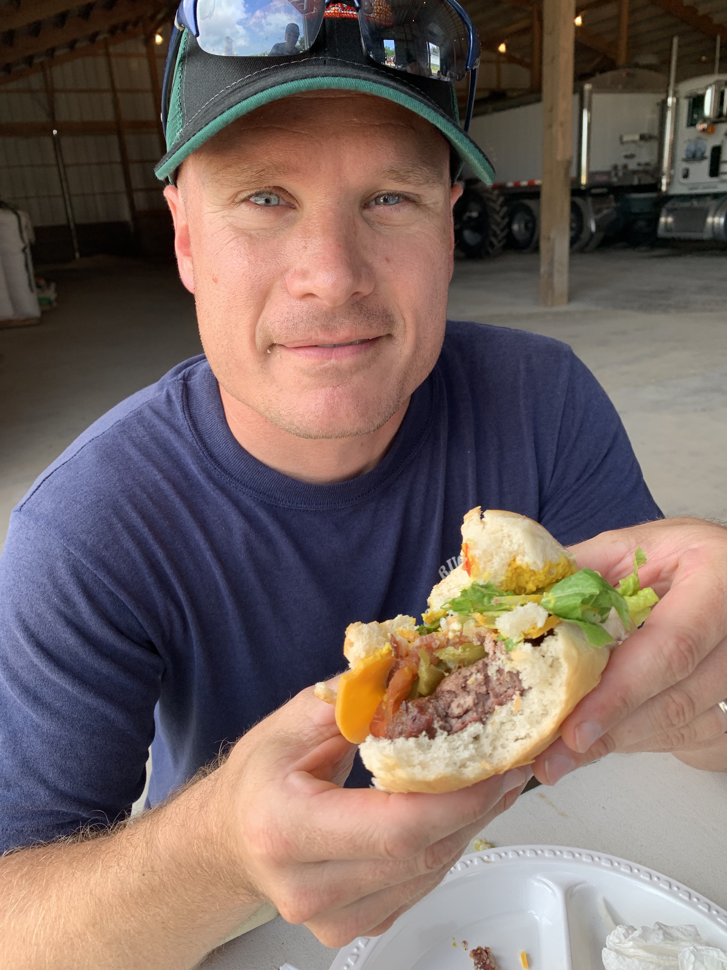 *incredible meal of fresh bratwurst and angus burgers straight from Grandpa’s farm