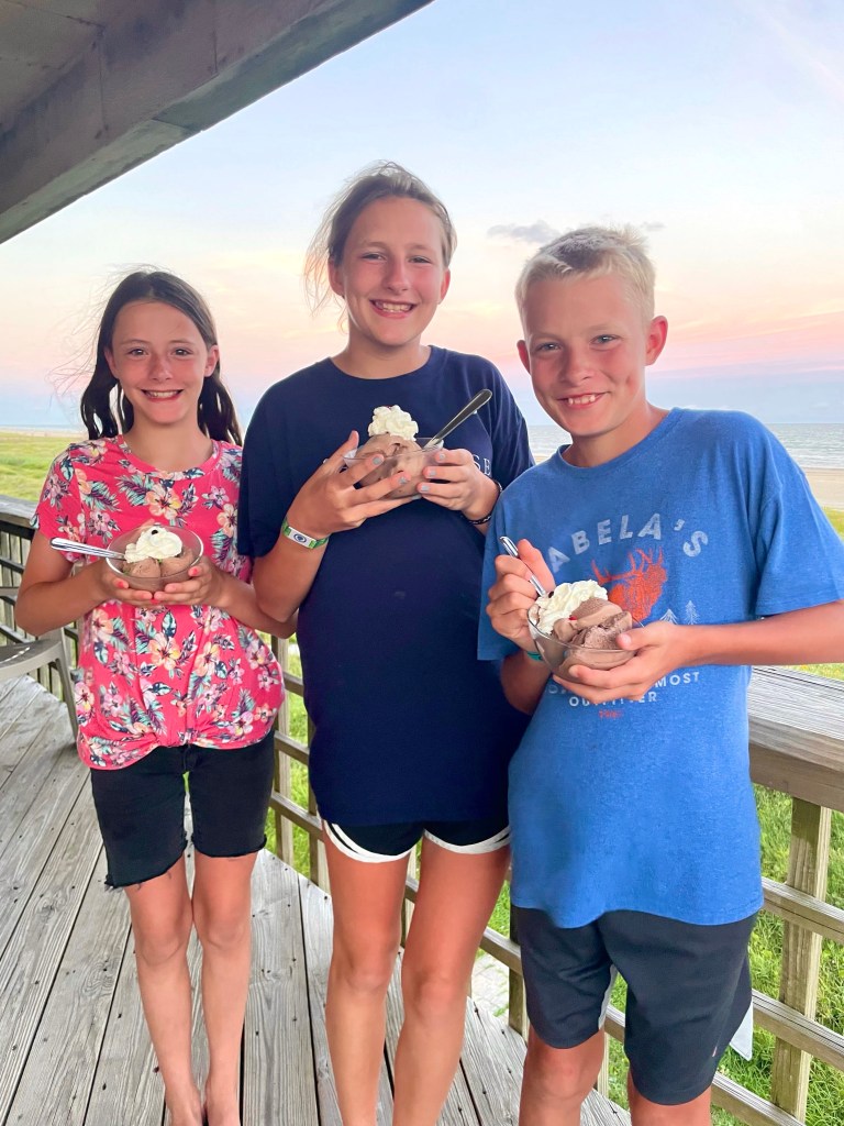 Not to be outdone, I was tickled to spend the evening with ALL MY BOYS! I don’t know if this has ever happened. If so, it’s been years. They took me on a date: dessert FIRST at Braums, and then to Texas Roadhouse.
