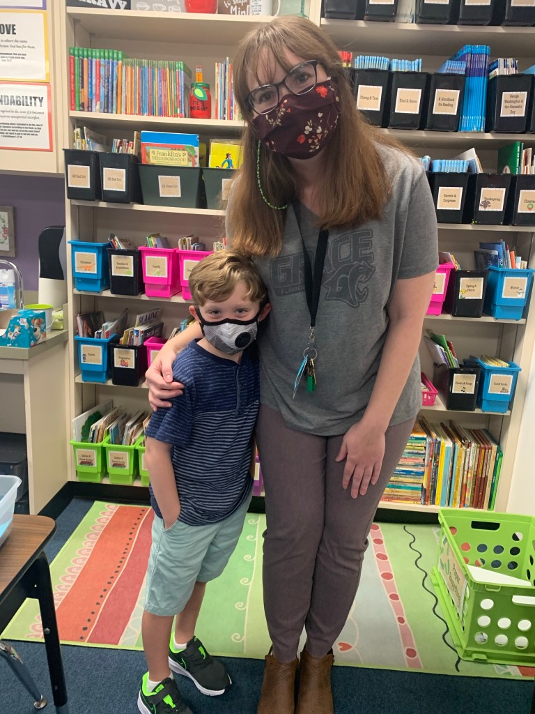 He stayed healthy, only missing class for his scheduled oncology appointments in Dallas. He made sweet friends and learned more every day, from phonics to Spanish to countless songs and Scripture verses. She laughed along with him as an accomplice when he pranked his classmates with a cardboard cake for April Fools’ Day.